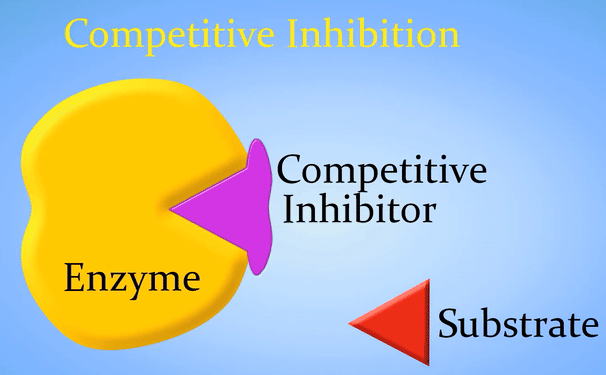 Om het verschijnsel 'competitive inhibition' uit te leggen wordt meestal het enzym als voorbeeld genomen. Als een enzym wordt bezet door een concurrerend stofje, dan moet dat eerst verdwijnen en duurt het langer voordat de reactie kan plaatsvinden. Als dat al gebeurt.